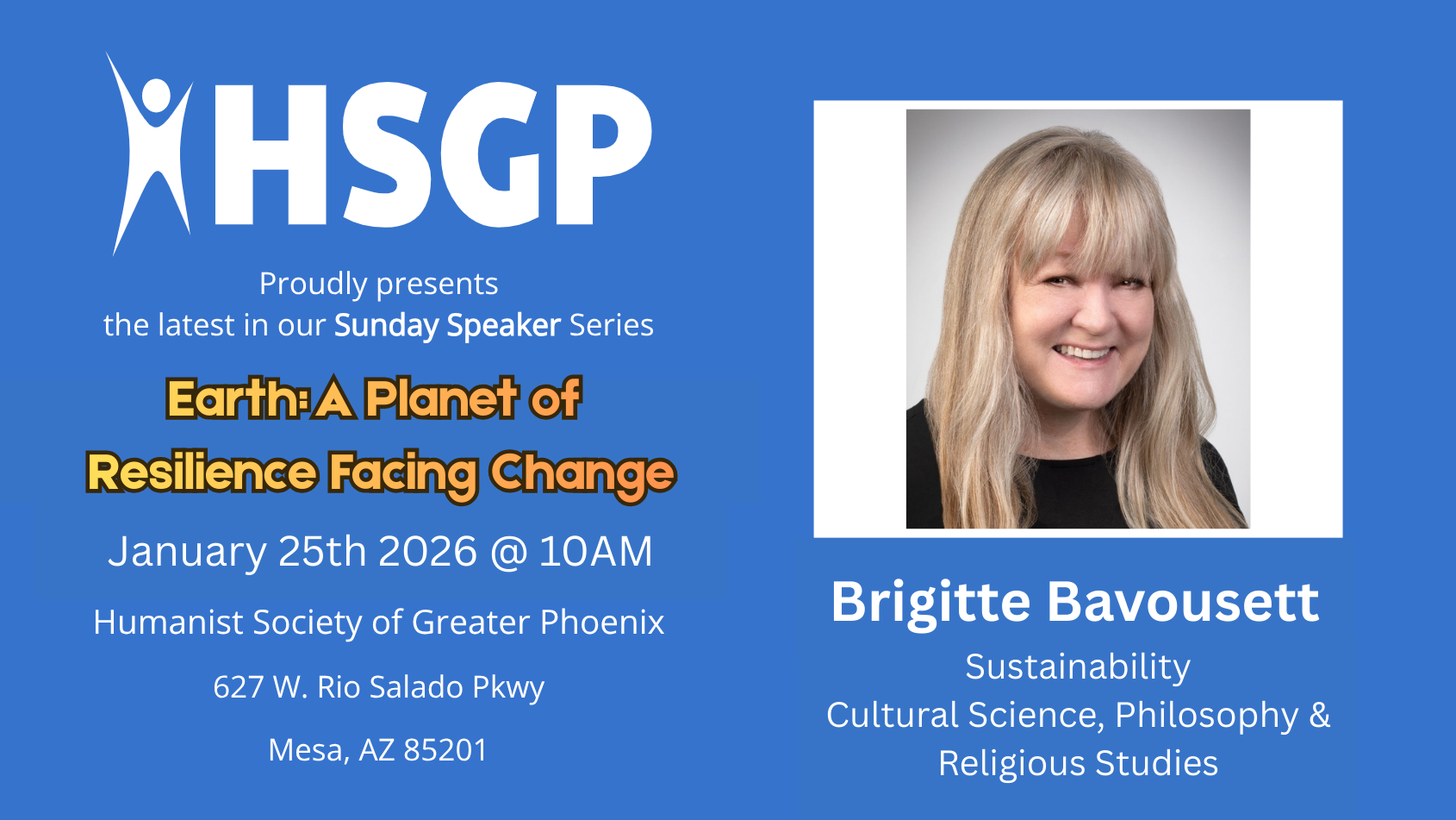 Sunday Speaker – Earth: A Planet of Resilience Facing Change | Humanist Society of Greater Phoenix | Sunday, January 25 | 10:00 AM | In-person with Virtual Option